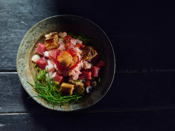 地元の新鮮な魚介類をふんだんに使い、見た目も美しい、こだわりの海鮮丼を提供します。